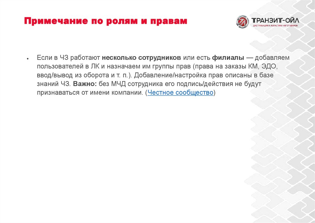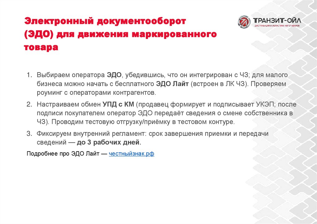 • Дальше движение идёт по стандартной схеме ЧЗ: отгрузки/приёмки через ЭДО