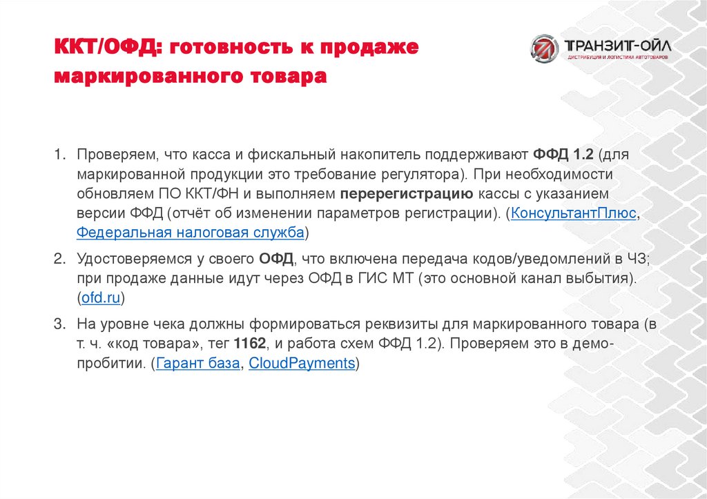 • ФФД 1.2 — формат фискальных документов версии 1.2. Обязателен для маркированных