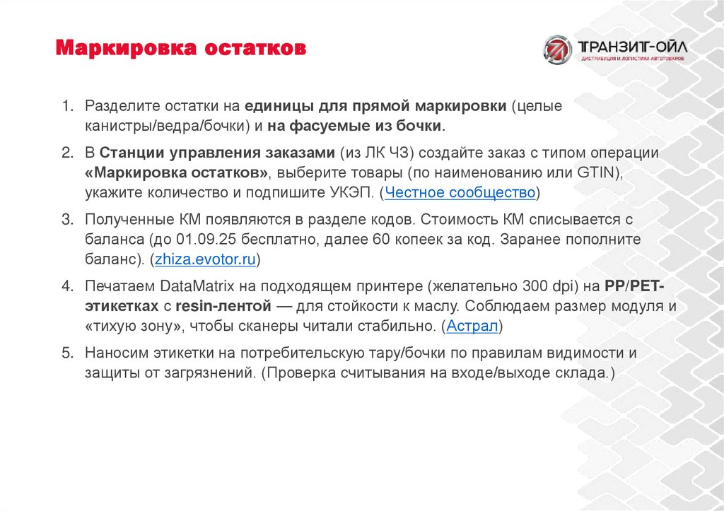 Инструкция по маркировке остатков ООО «ЛЛК-Интернешнл» и ООО «Транзит-Ойл»
