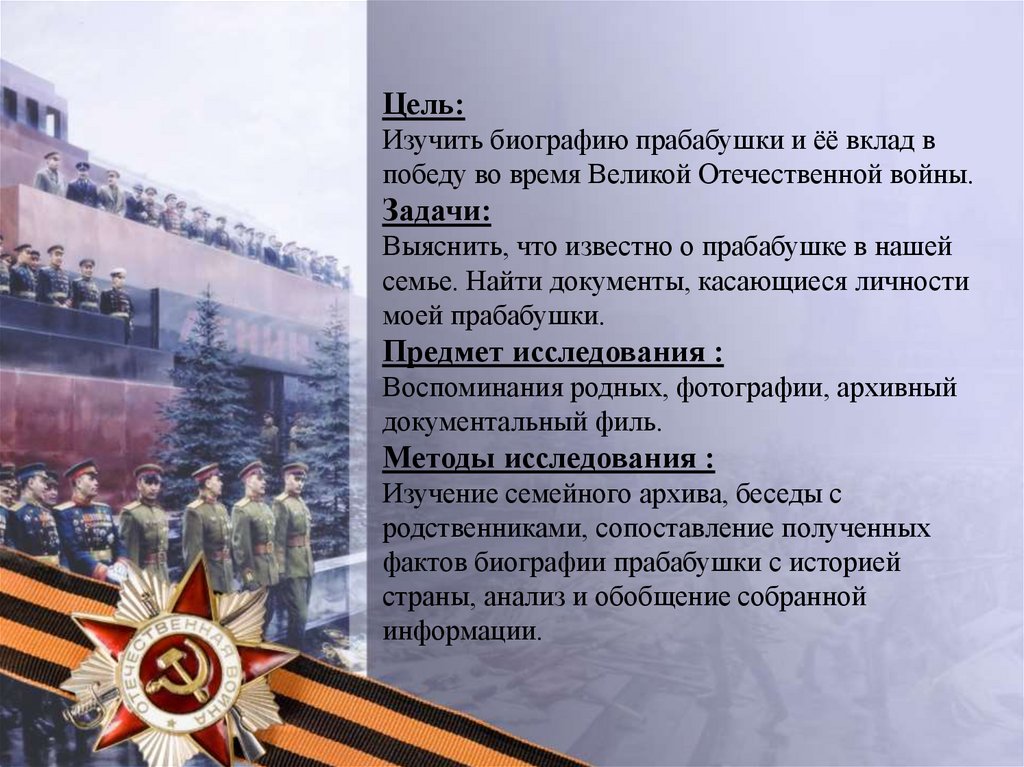 Цель:Изучить биографию прабабушки и ёё вклад в