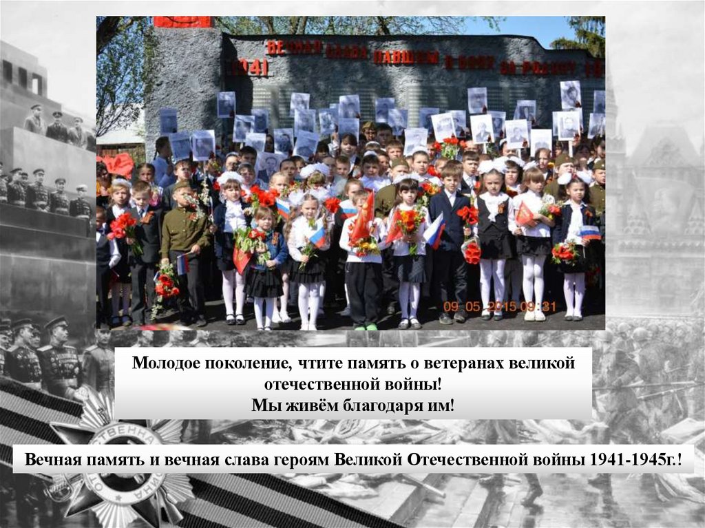 Молодое поколение, чтите память о ветеранах великойотечественной войны!