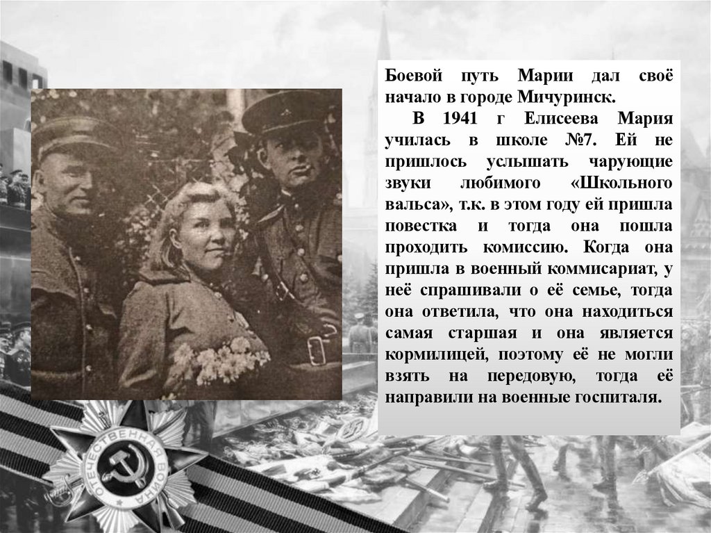 Боевой путь Марии дал своёначало в городе Мичуринск.