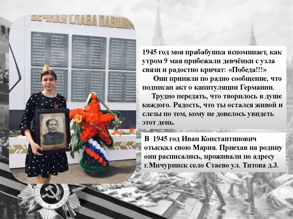 Мичуринска, они были земляками, прадед рассказал Марии что он