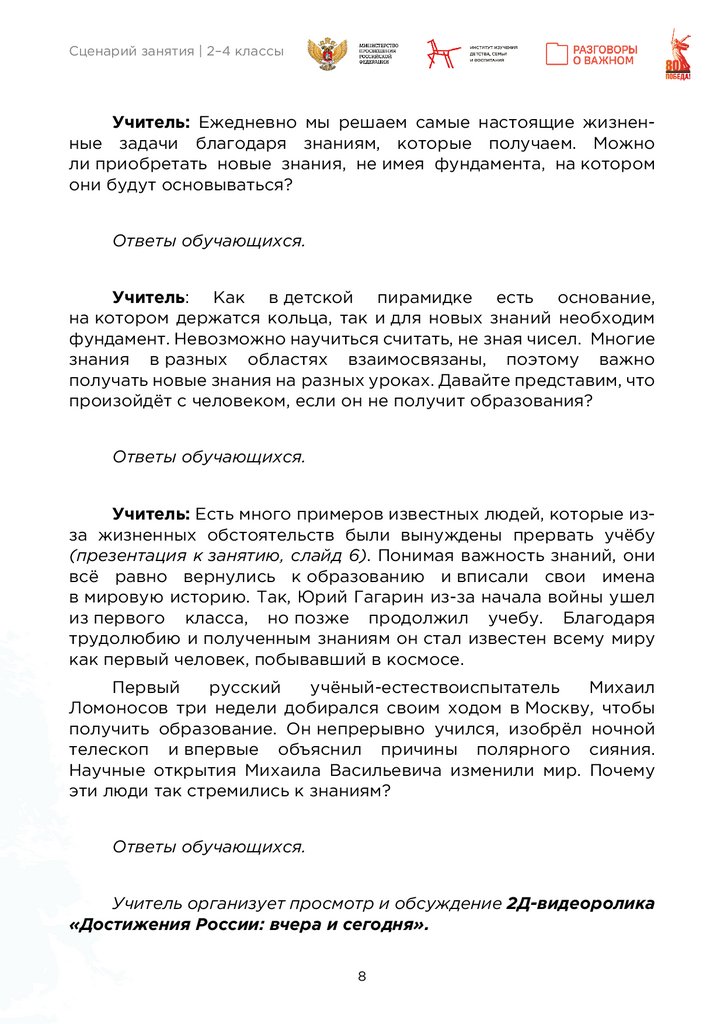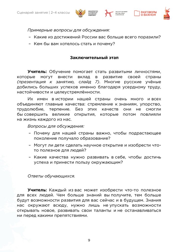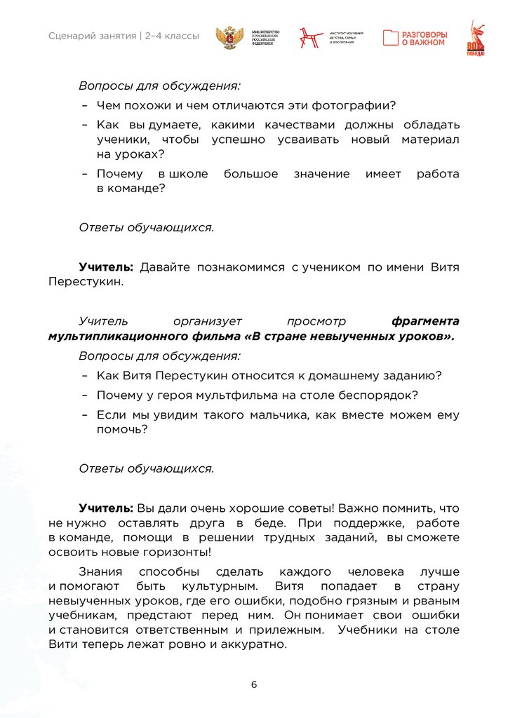 Сценарий занятия | 2–4 классыПримерные вопросы для обсуждения:
