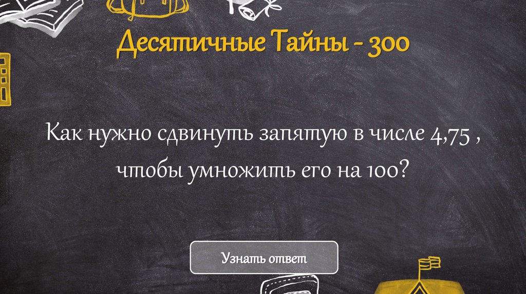 Десятичные Тайны - 300Как нужно сдвинуть запятую в числе 4,75 ,