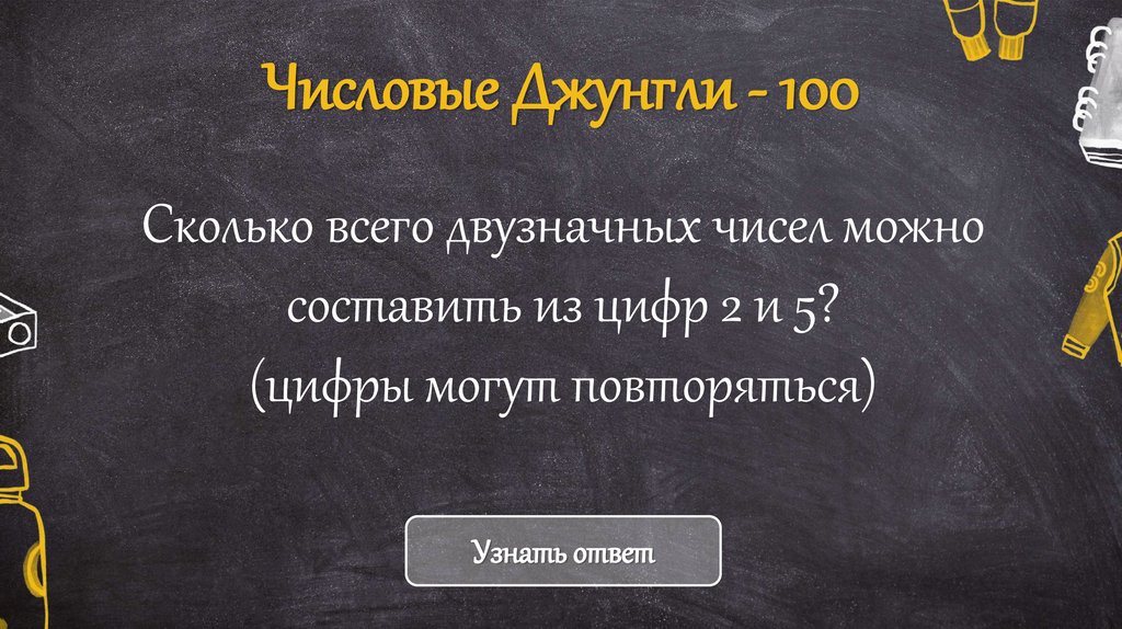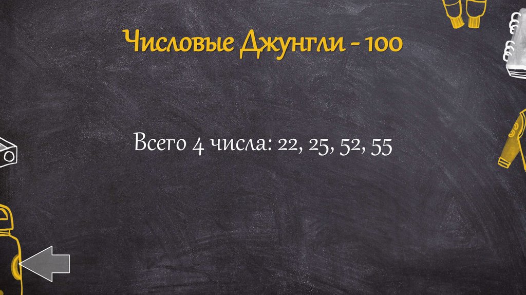 Числовые Джунгли - 100Всего 4 числа: 22, 25, 52, 55