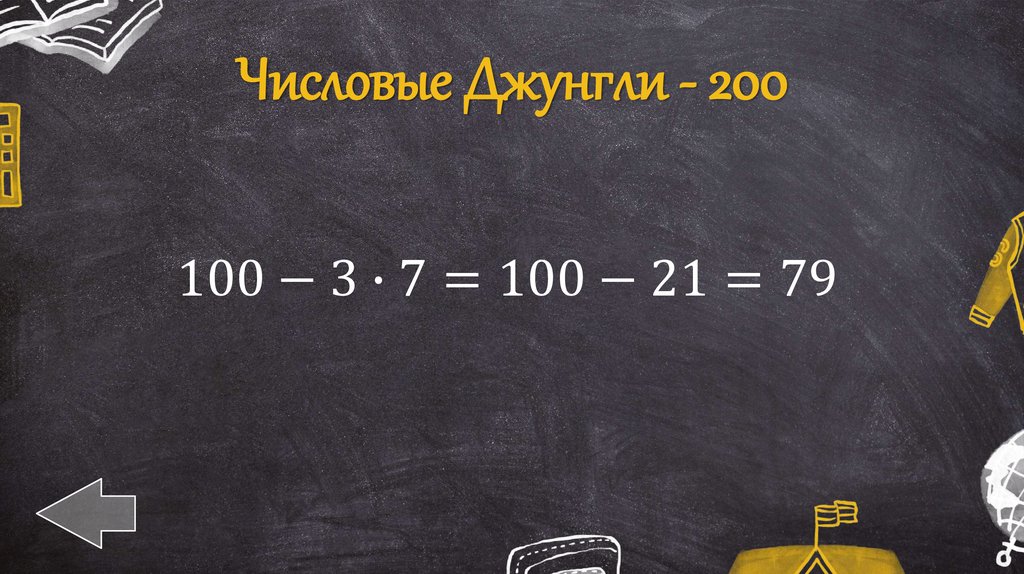 Числовые Джунгли - 200100 − 3 ∙ 7 = 100 − 21 = 79