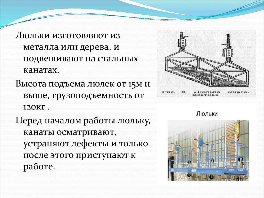 Работающие на люльках обязаны с помощью специальных