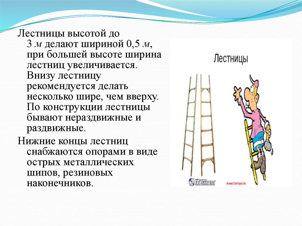 Лестницы высотой до3 м делают шириной 0,5 м,