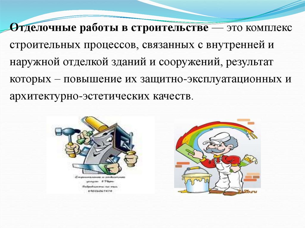 Отделочные работы в строительстве — это комплексстроительных процессов, связанных с внутренней и