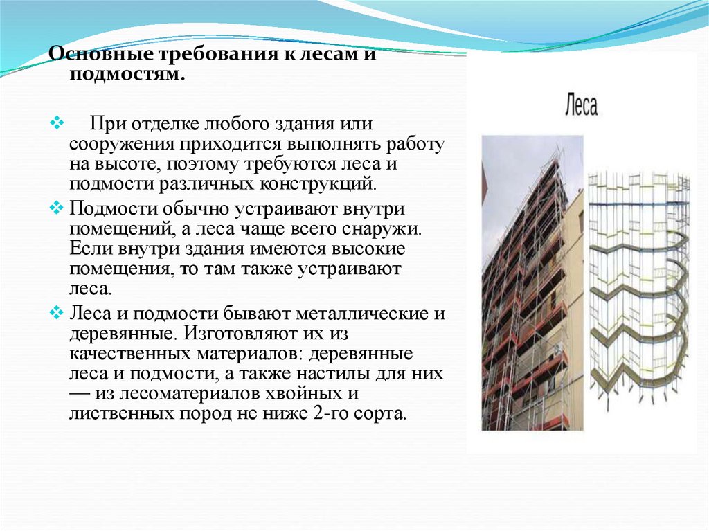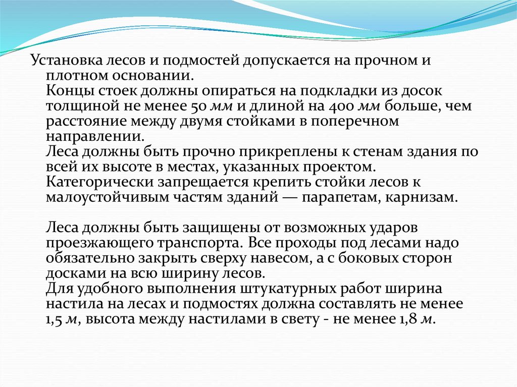 Основные требования к лесам иподмостям.