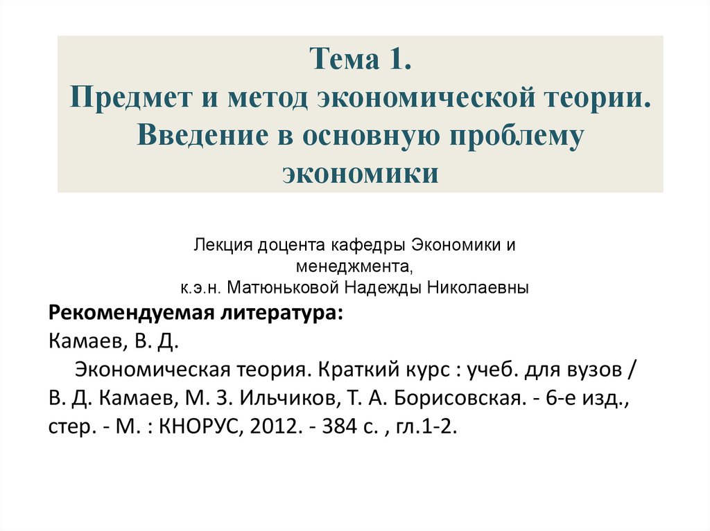 1. Тема 1. Предмет и метод экономической теории. Введение в основную проблему экономики