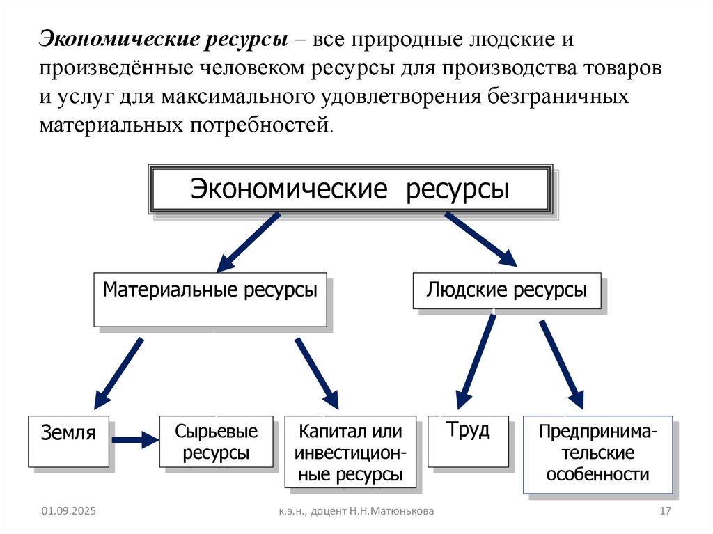 Экономические ресурсы – все природные людские ипроизведённые человеком ресурсы для производства товаров