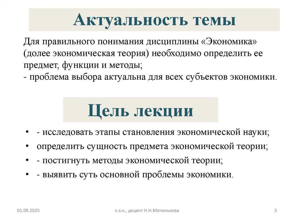 Актуальность темыДля правильного понимания дисциплины «Экономика»