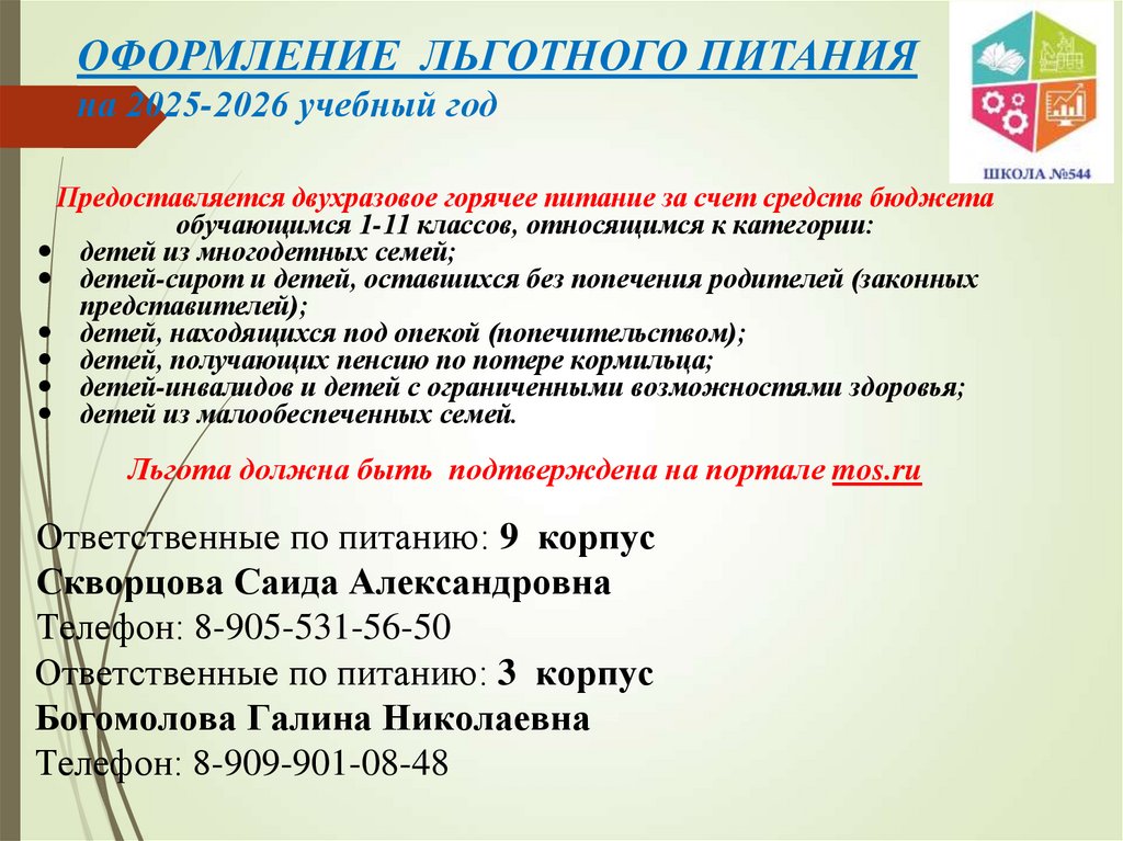ОФОРМЛЕНИЕ ЛЬГОТНОГО ПИТАНИЯна 2025-2026 учебный год