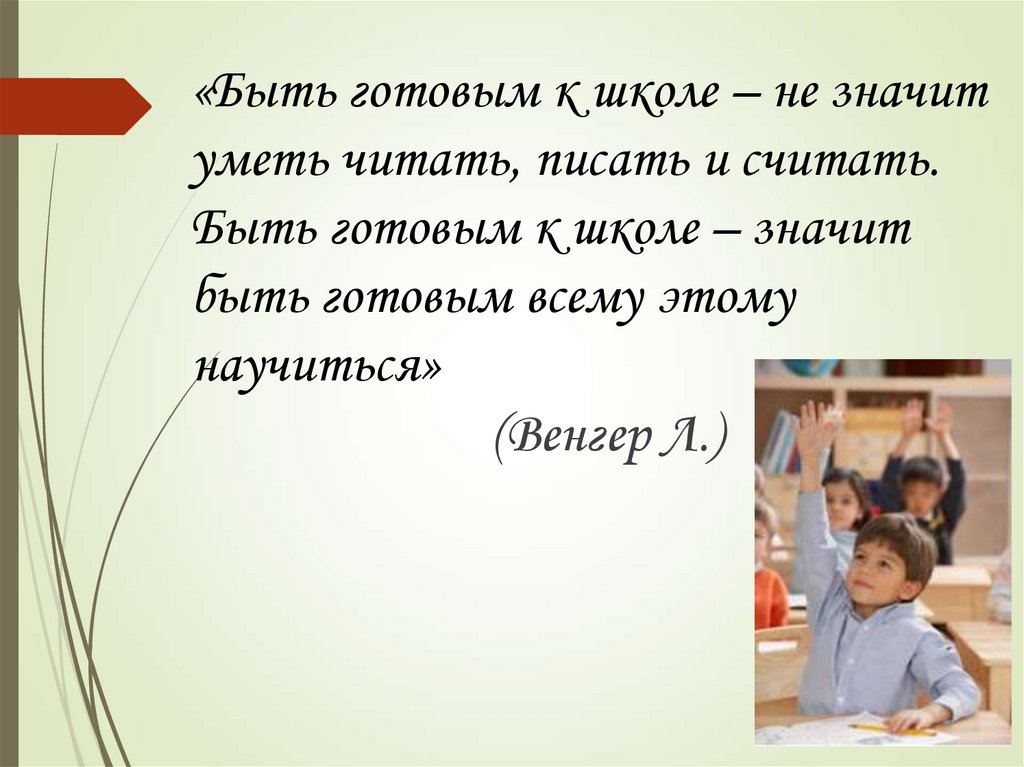 «Быть готовым к школе – не значитуметь читать, писать и считать.