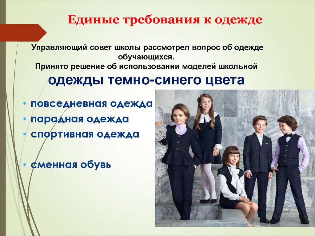 Единые требования к одеждеУправляющий совет школы рассмотрел вопрос об одежде
