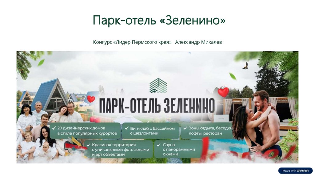 «Зеленино» — это парк-отель с уникальной в мире концепцией «Путешествуй по миру не выезжая из Перми. Без перелетов и виз»