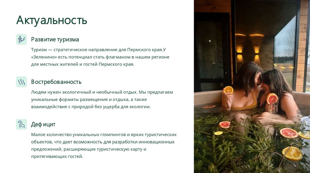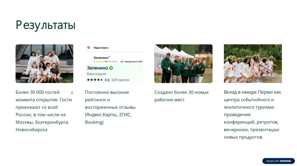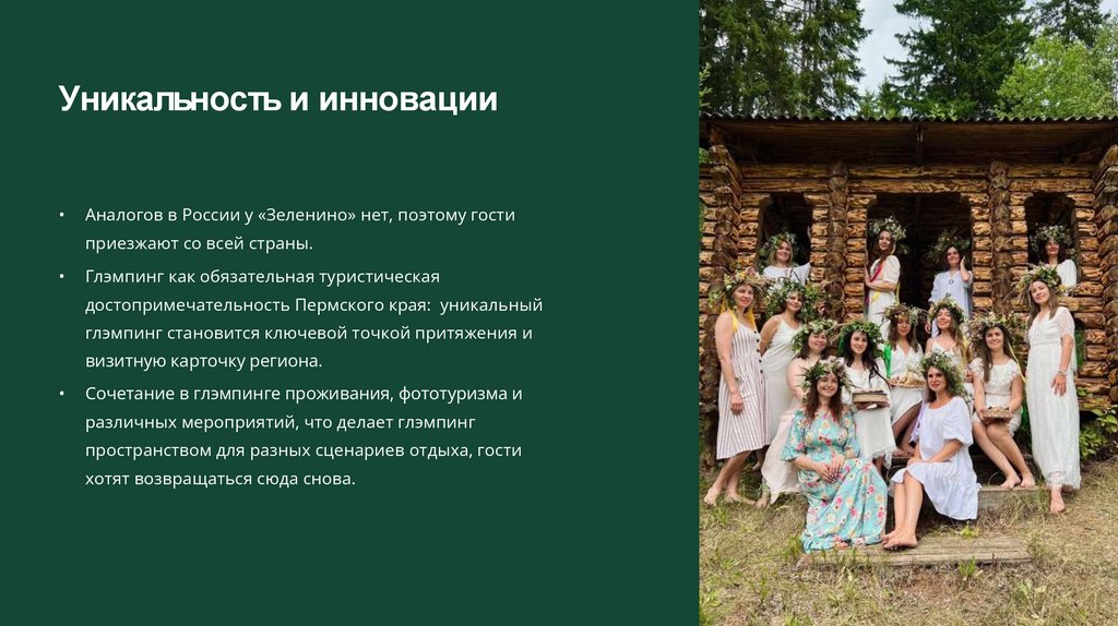 Уникальность и инновацииАналогов в России у «Зеленино» нет, поэтому гости