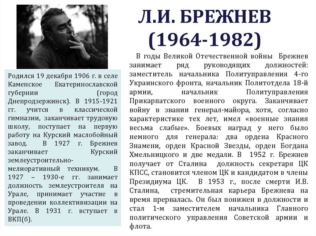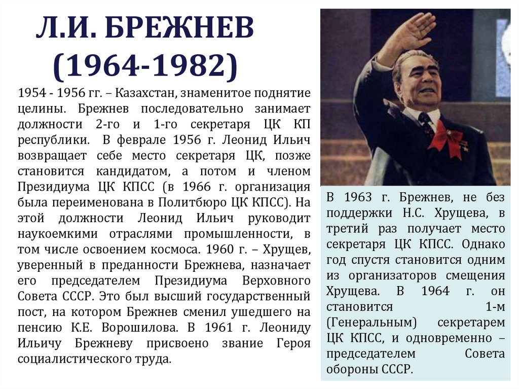 8. ПРИХОД К ВЛАСТИ Л.И. БРЕЖНЕВА