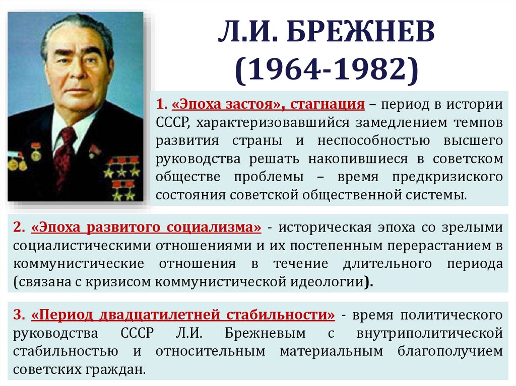 • «Застой» – период правления Л.Брежнева (1964 – 1982