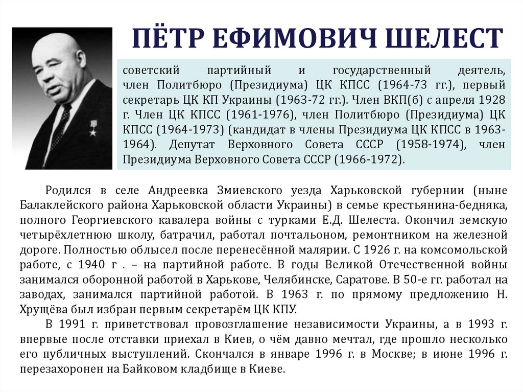 1. Участвовал в заговоре против Н. Хрущева.