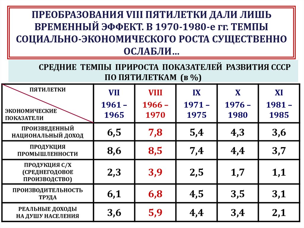 С нач. 50-х гг. СССР совершил стремительный скачок в своём развитии:По темпам роста производства и