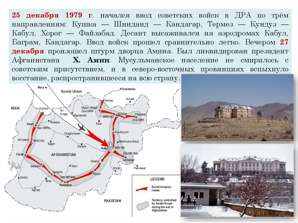 25 декабря 1979 г. начался ввод советских войск в ДРА по трёмнаправлениям: Кушка — Шинданд — Кандагар, Термез — Кундуз —