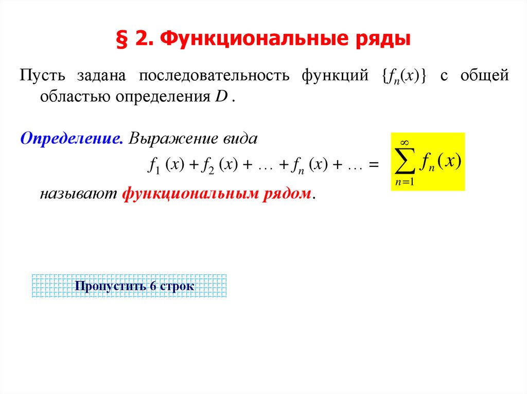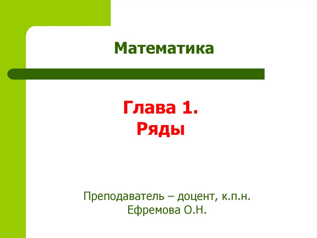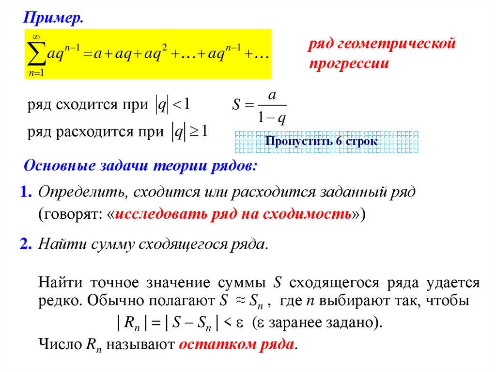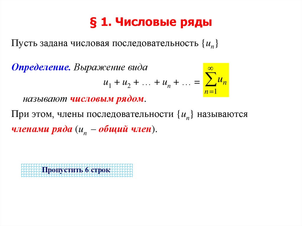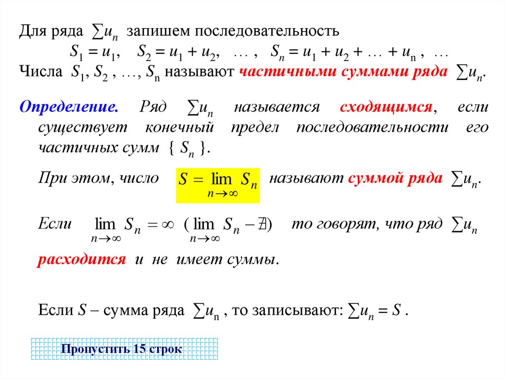 Для ряда ∑un запишем последовательностьS1 = u1, S2 = u1 + u2, … , Sn = u1 + u2 + … + un , …