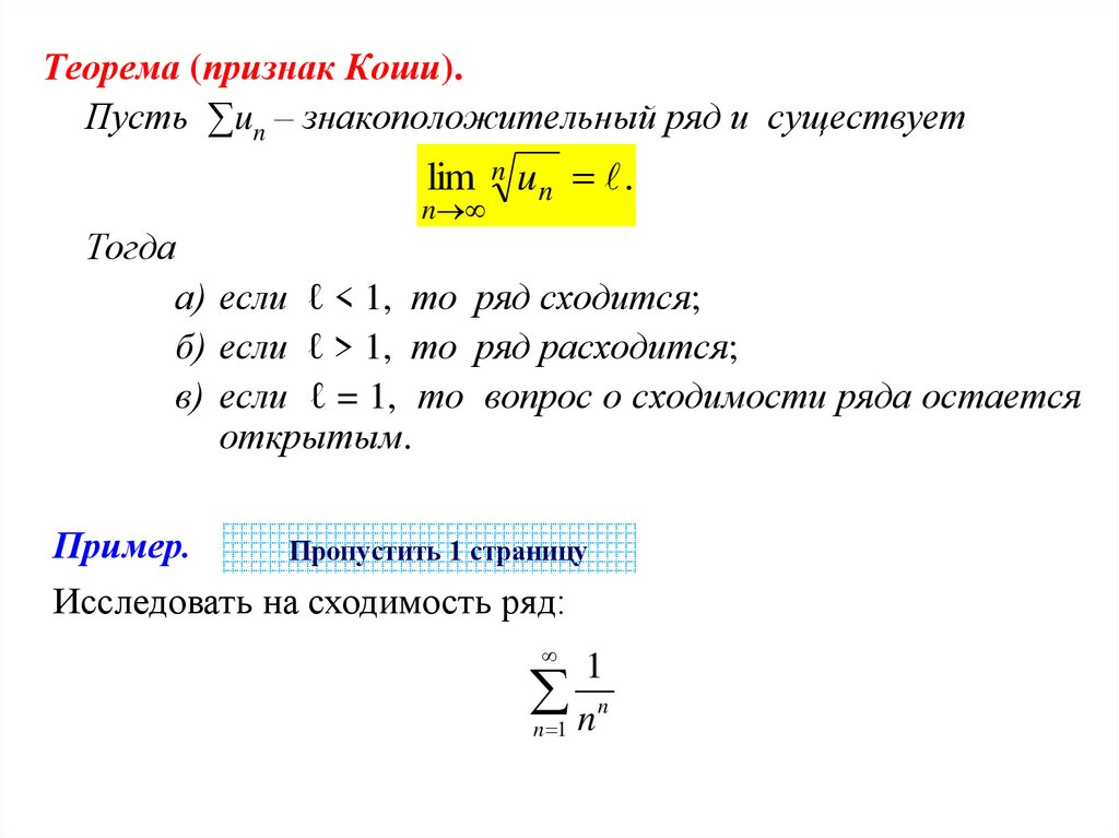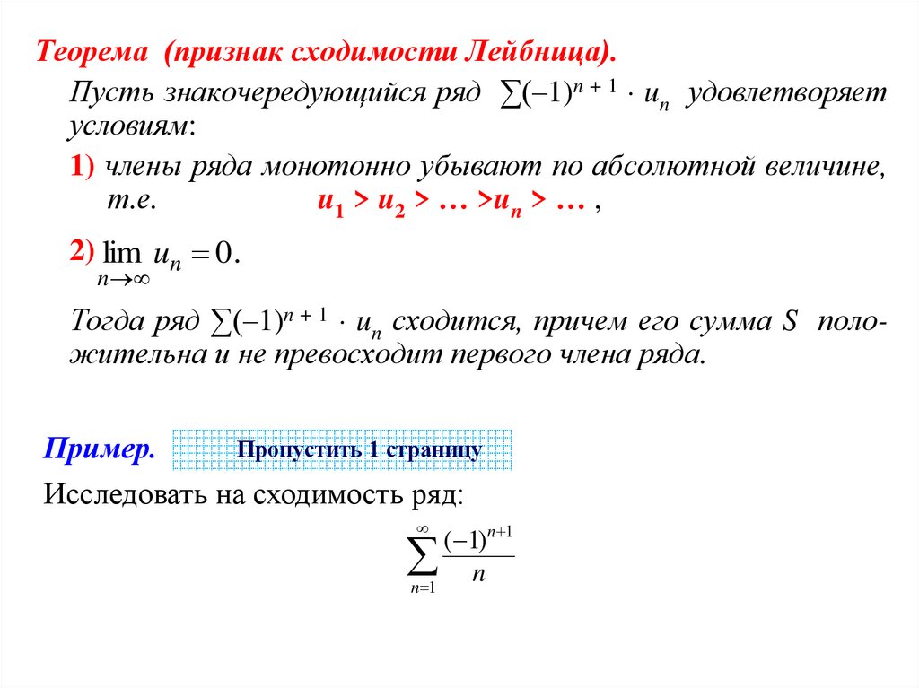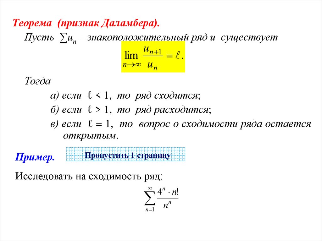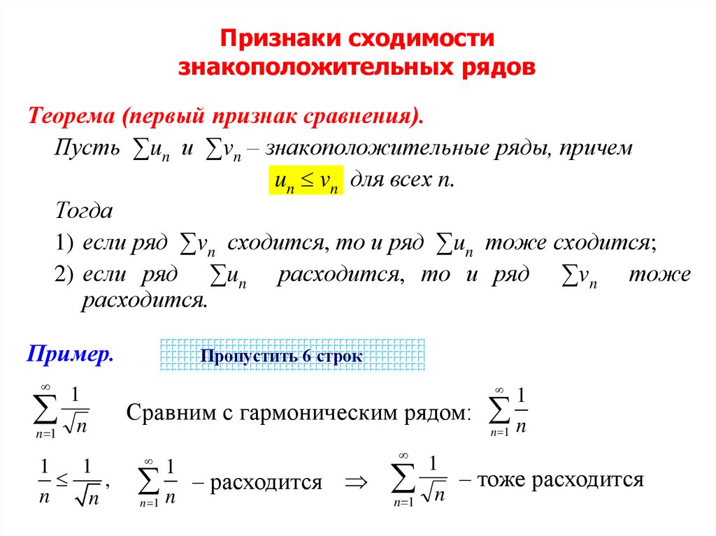1) если ряд ∑vn сходится, то и ряд ∑un тоже сходится;