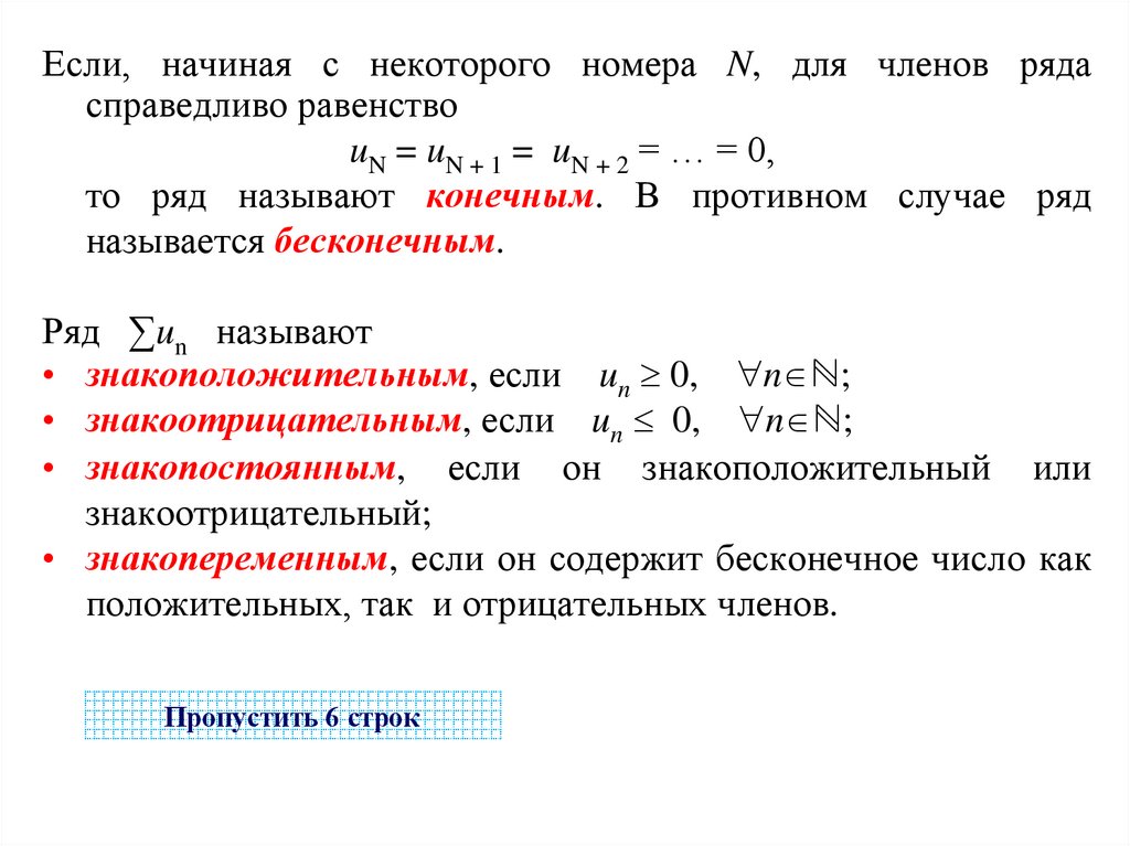 Если, начиная с некоторого номера N, для членов рядасправедливо равенство