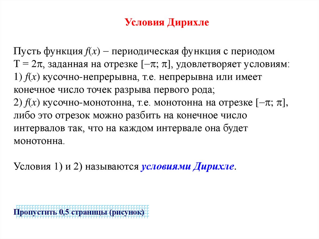 Условия ДирихлеПусть функция f(x) периодическая функция с периодом