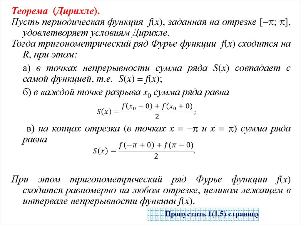 Теорема (Дирихле).Пусть периодическая функция f(x), заданная на отрезке [ ; ],