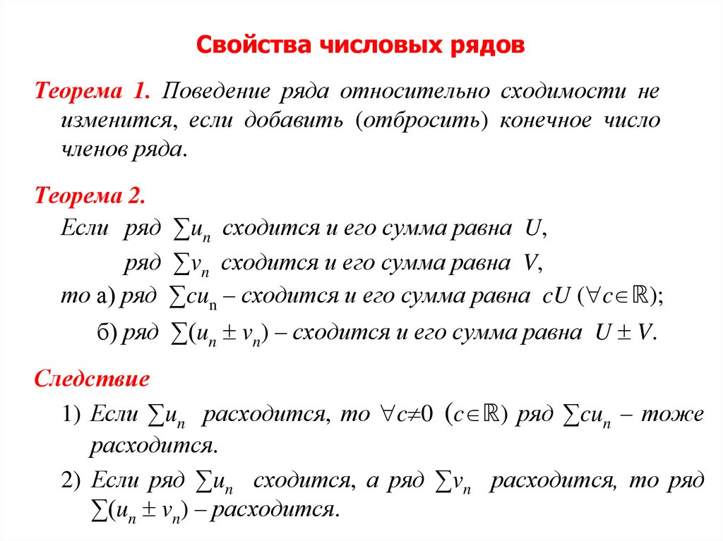 1) Если ∑un расходится, то c 0 (c ℝ) ряд ∑cun – тоже
