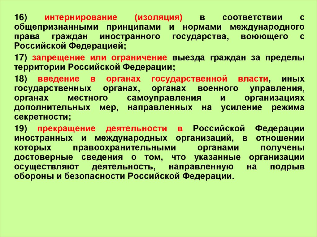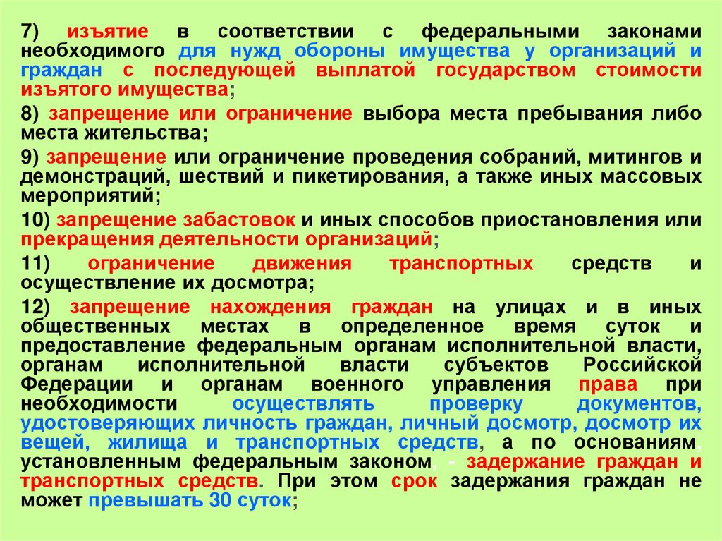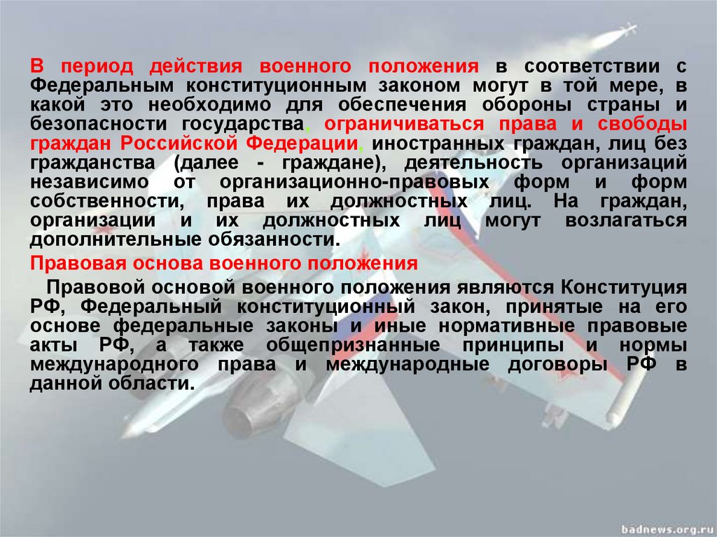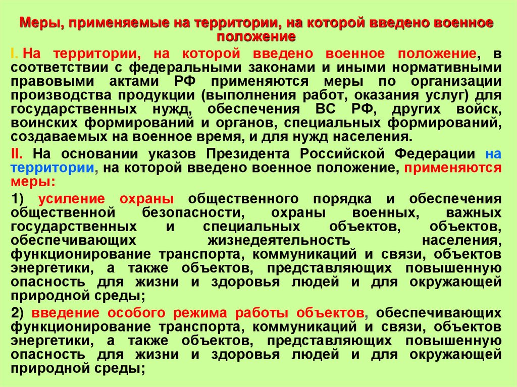 В период действия военного положения в соответствии сФедеральным конституционным законом могут в той мере, в