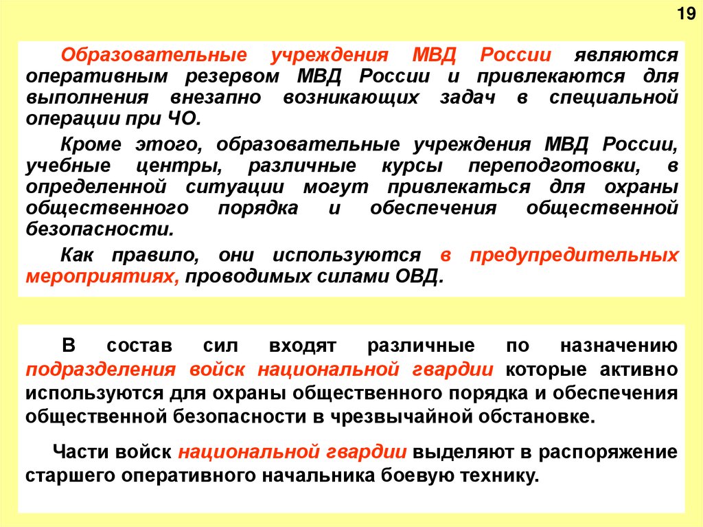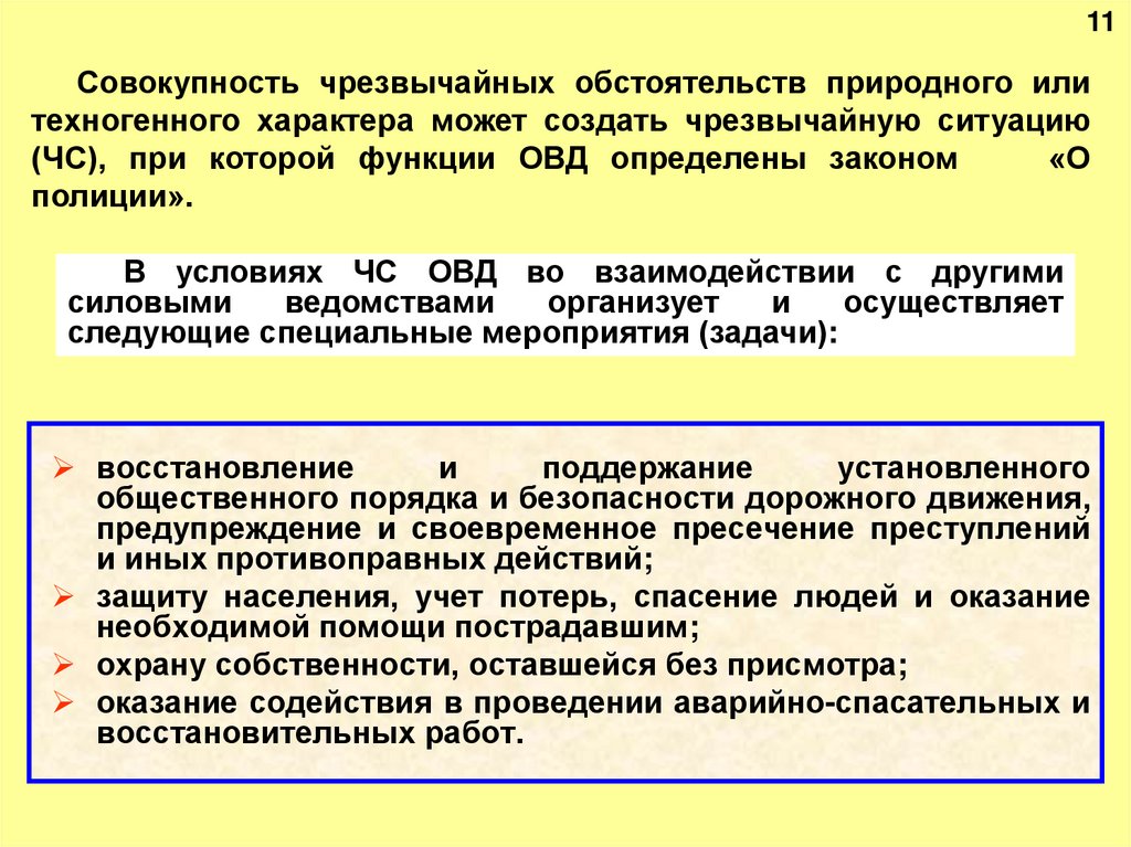 при возникновении чрезвычайных обстоятель-ств (чрезвычайных ситуаций) (Приказ МВД
