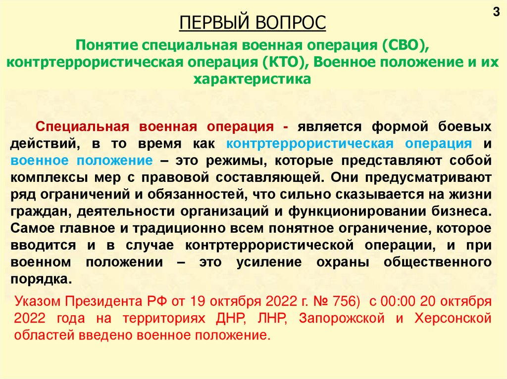 Учебные вопросы:1. Понятие специальная военная операция (СВО),