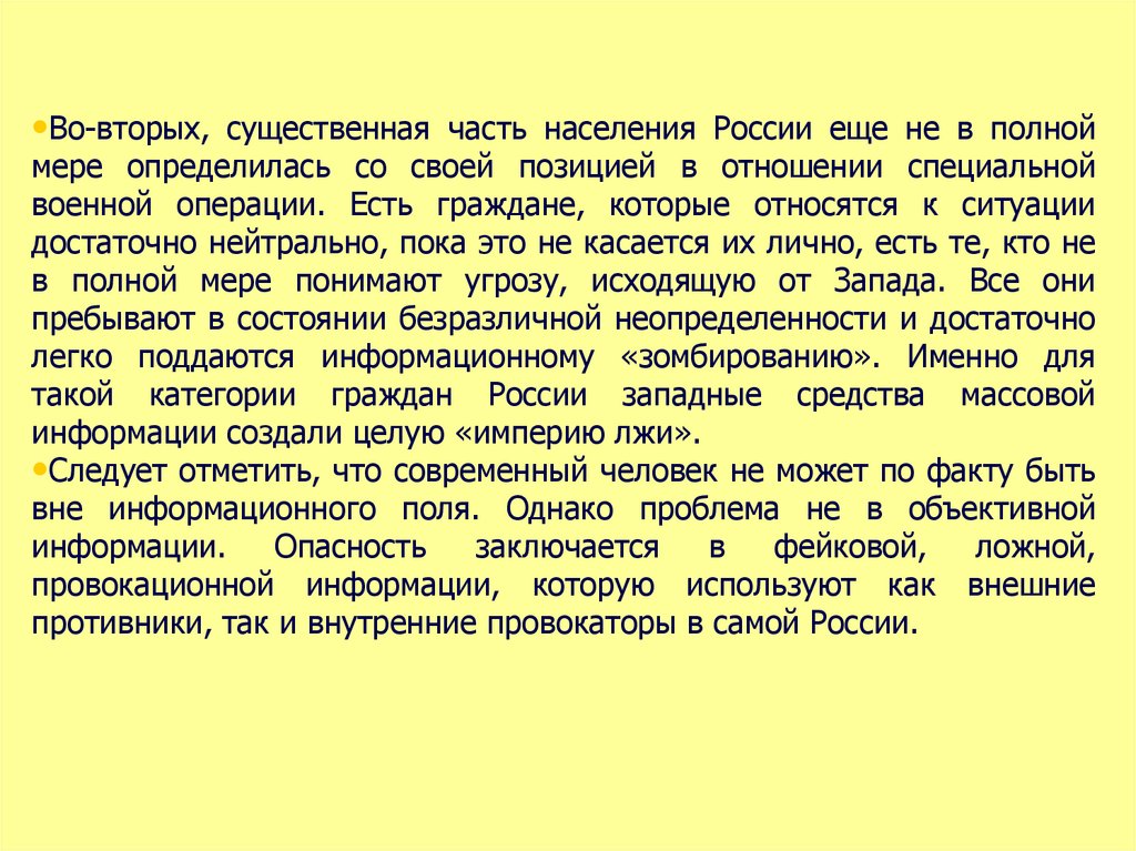 •Во-вторых, существенная часть населения России еще не в полноймере определилась со своей позицией в отношении специальной