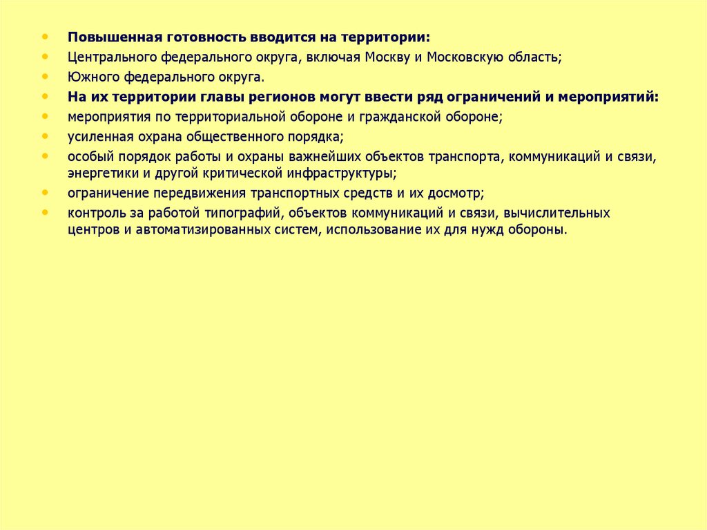 На их территории главы регионов могут ввести ряд ограничений и мероприятий: