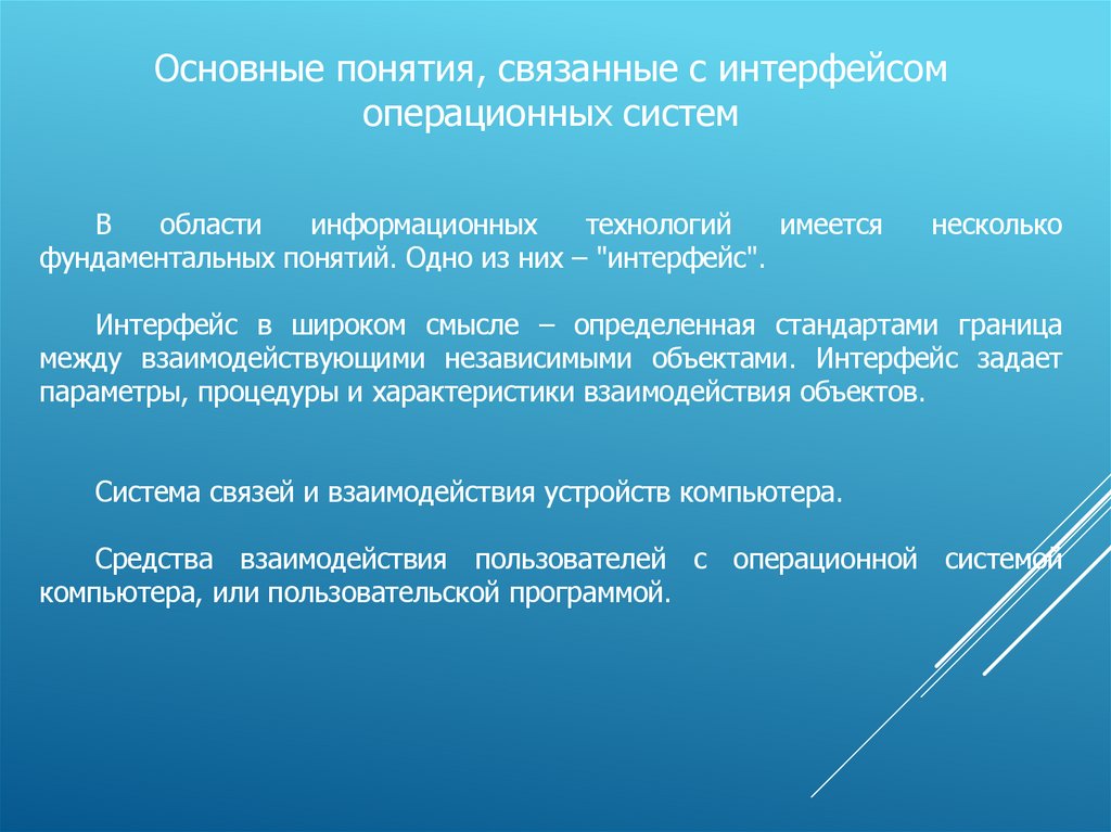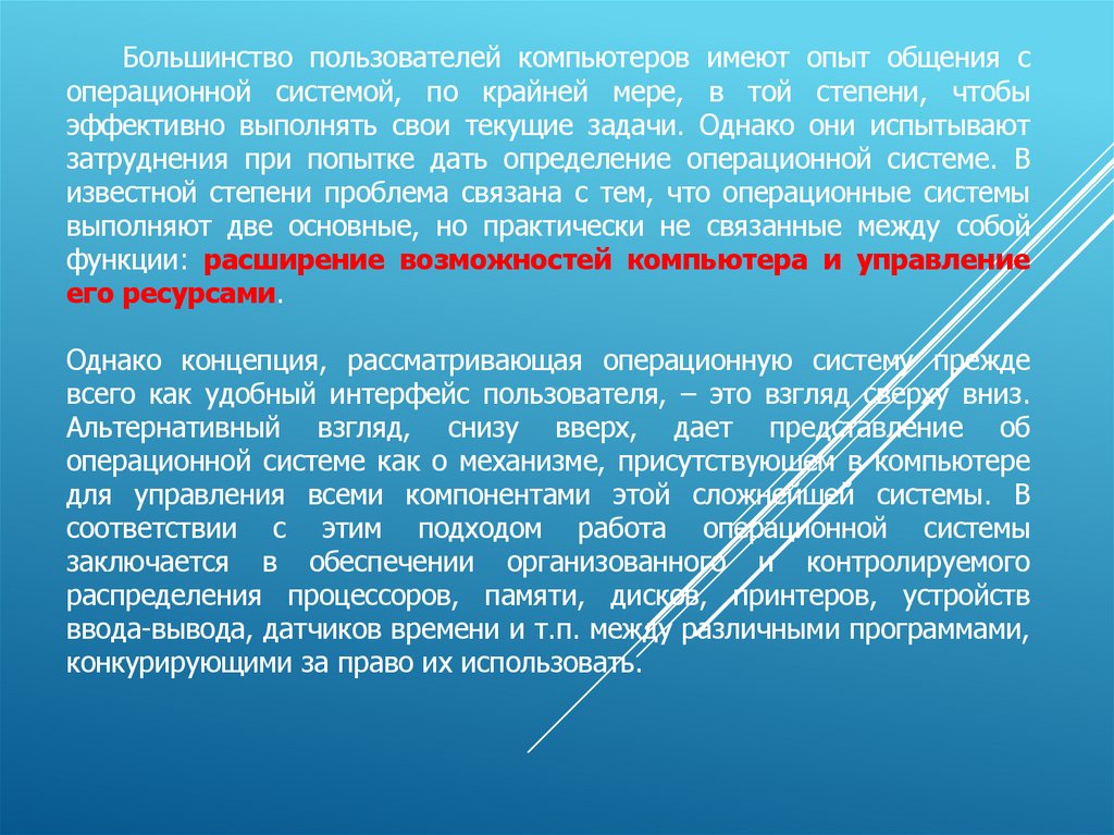 ПОНЯТИЯ ОСЧтобы получить представление об ОС выделяют ОС как:
