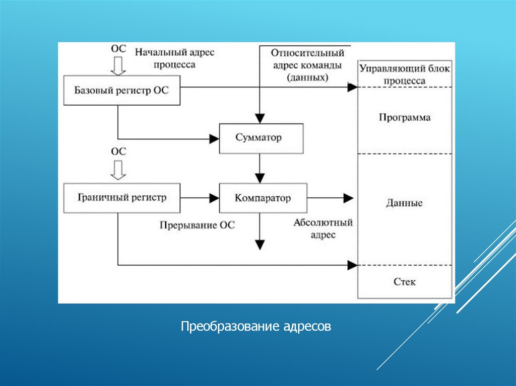 относительных адресов в абсолютные адреса основной памяти.