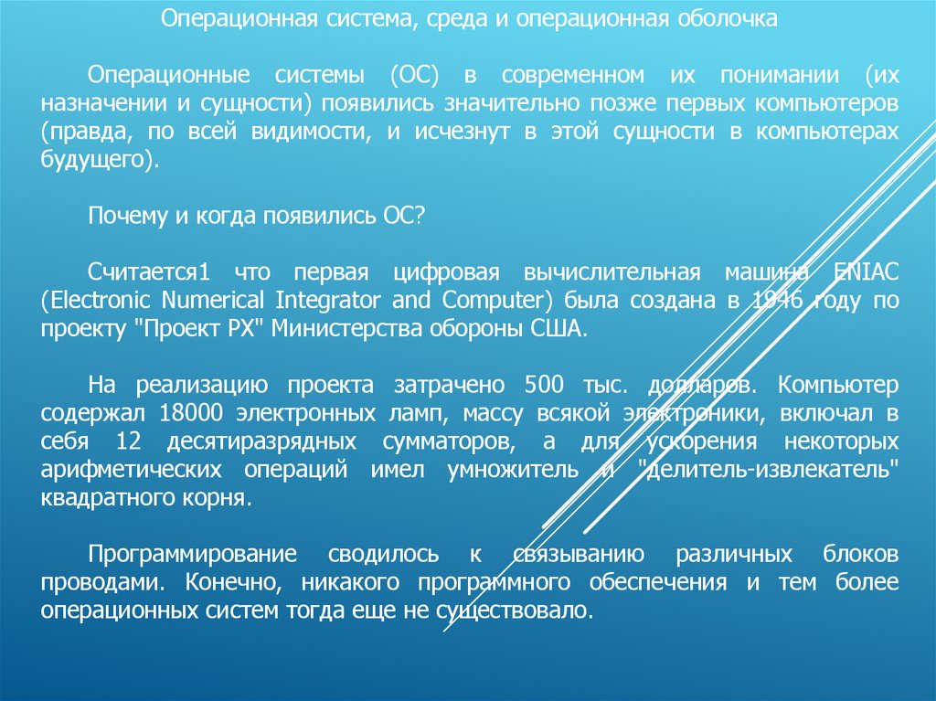 История, назначение, функции операционных систем. Лекция 1