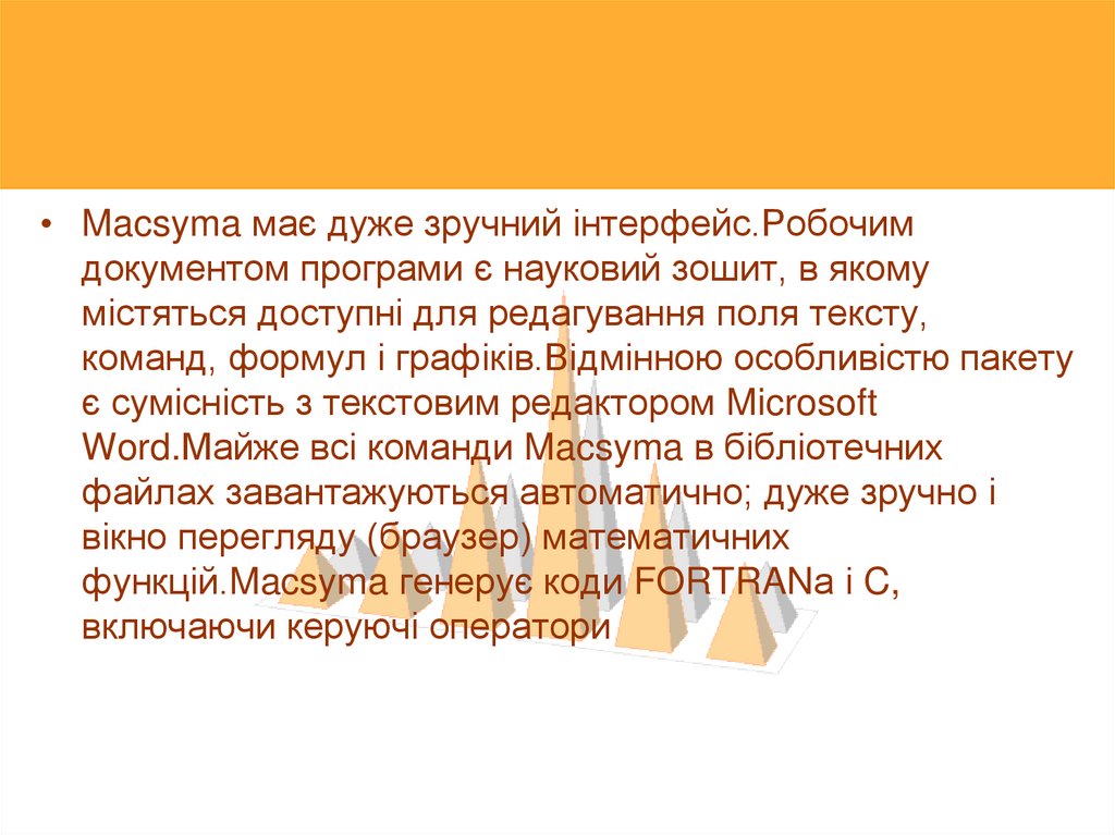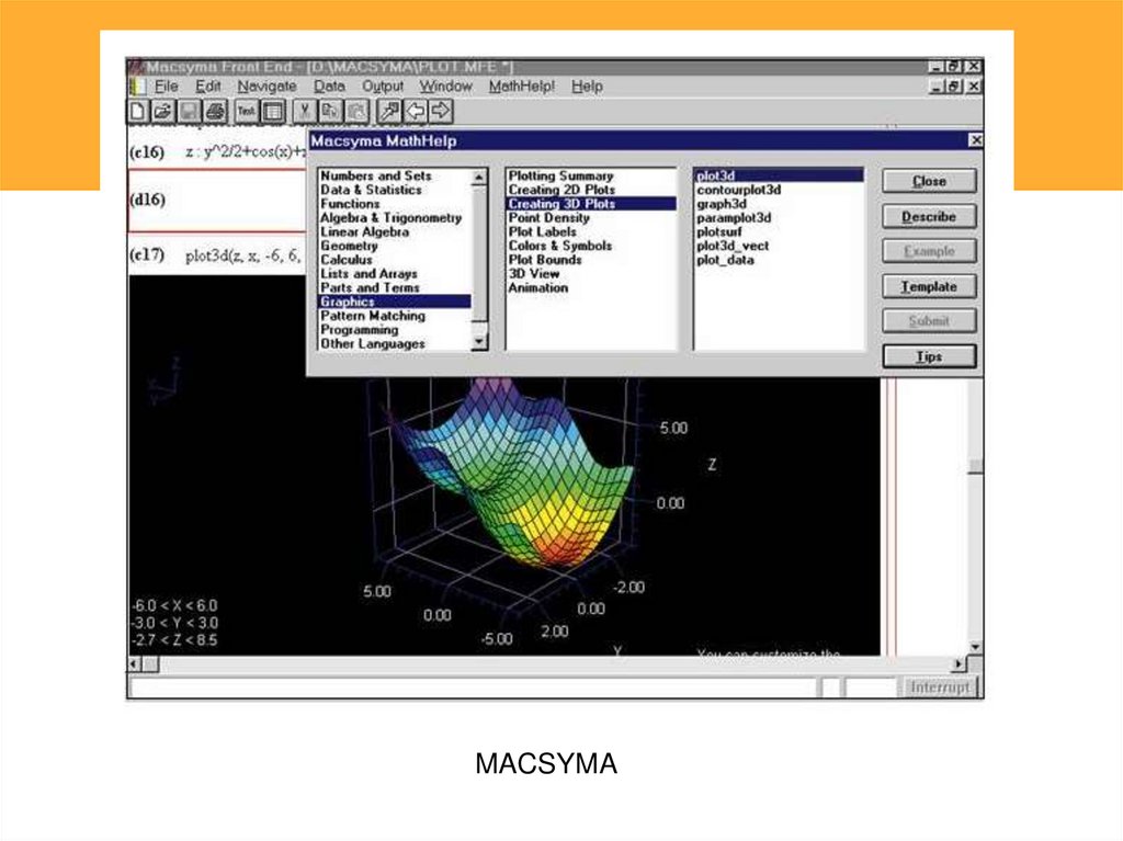 • Macsyma від компанії Macsyma,Inc.(http://www.macsyma.com/) – це одна з перших