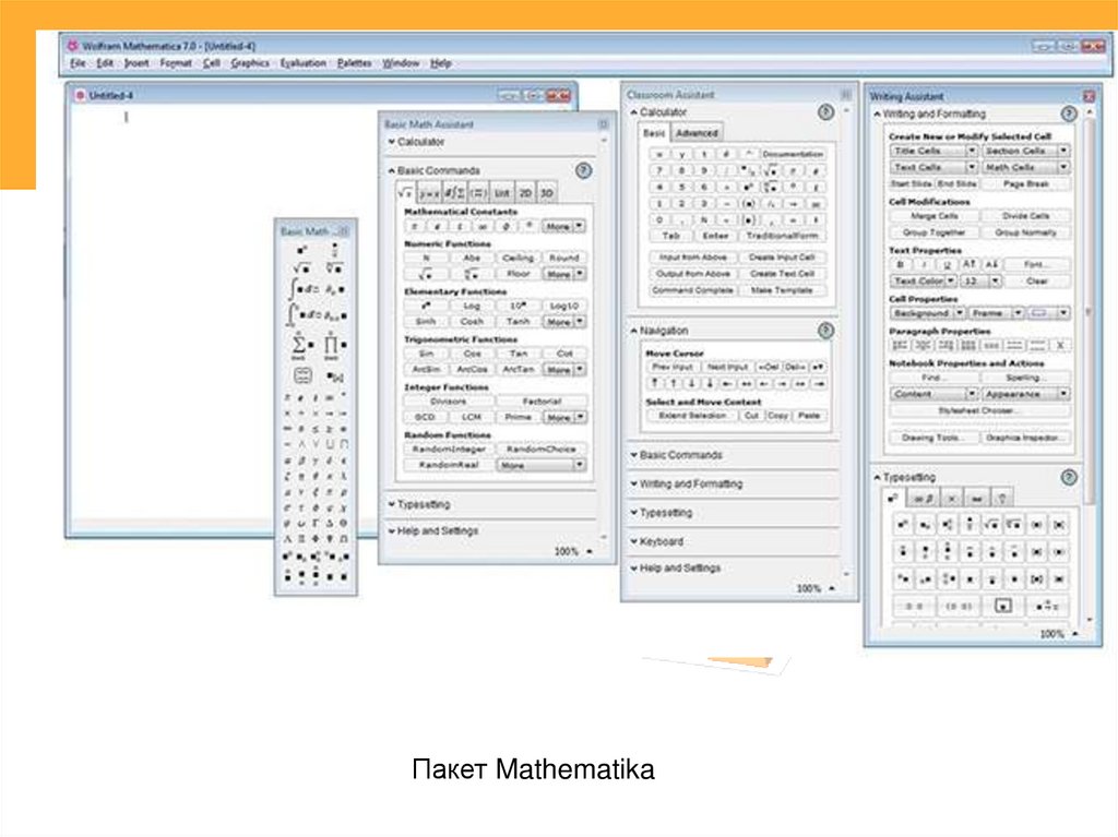 • Пакет Mathematika надає широкі можливості длясимвольних (аналітичних) перетворювань математичних