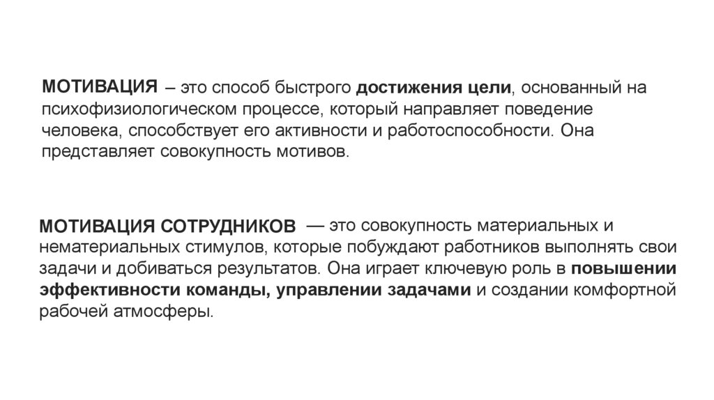 МОТИВАЦИЯ СОТРУДНИКОВ — это совокупность материальных и