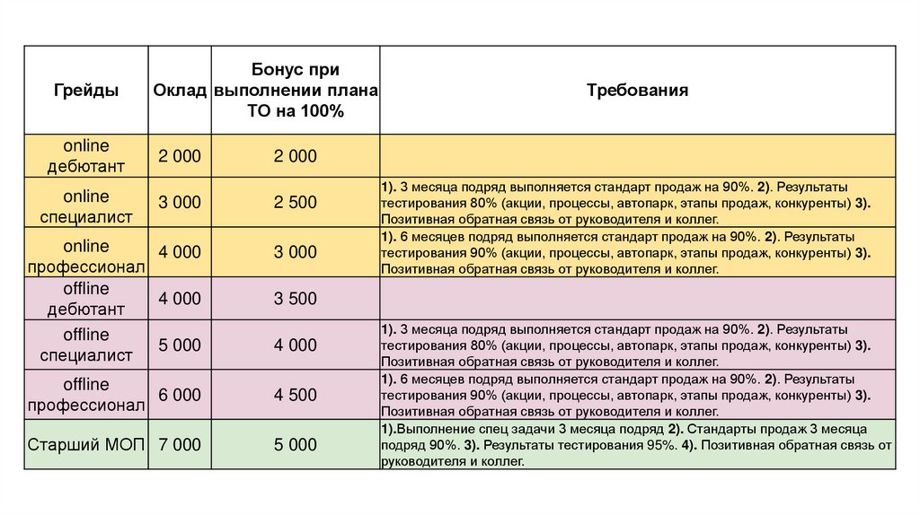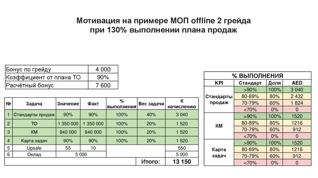 Мотивация на примере МОП offline 2 грейдапри 130% выполнении плана продаж