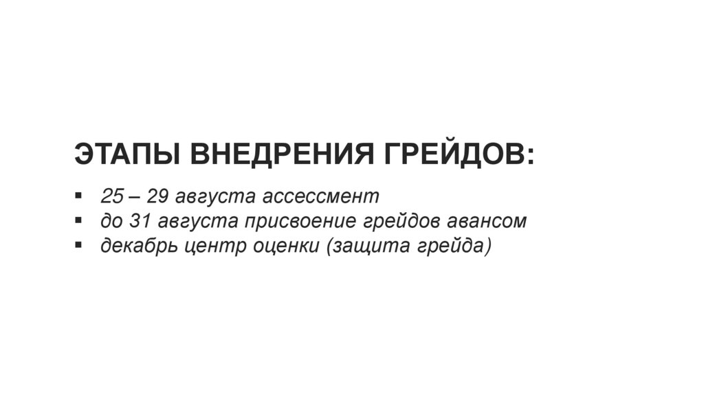 ЭТАПЫ ВНЕДРЕНИЯ ГРЕЙДОВ:25 – 29 августа ассессмент