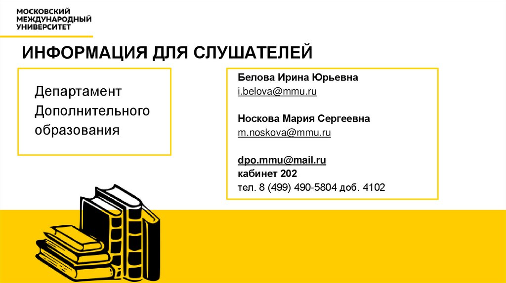 ИНФОРМАЦИЯ ДЛЯ СЛУШАТЕЛЕЙДепартамент