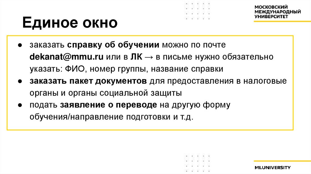 dekanat@mmu.ru или в ЛК → в письме нужно обязательно
