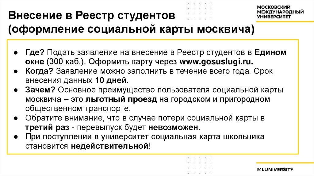 Внесение в Реестр студентов(оформление социальной карты москвича)